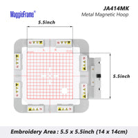 JA414MK: 1 x bastidor magnético de bordado (bastidor metálico SQ14B); 8 x imanes; 1 x plantilla de cuadrícula.