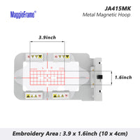 JA415MK: 1 x bastidor magnético de bordado (bastidor metálico RE10B); 6 x imanes; 1 x plantilla de cuadrícula.