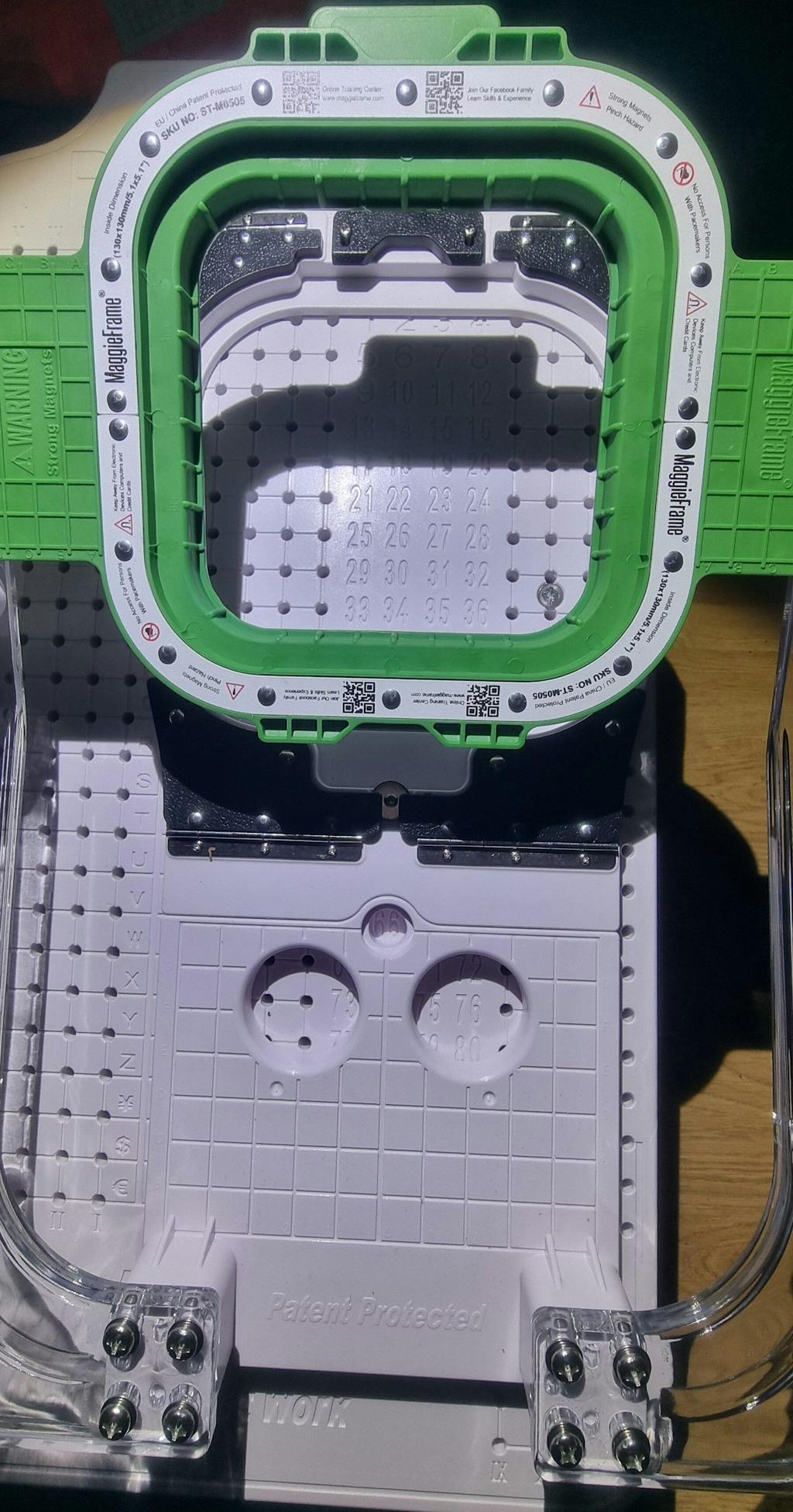 I recently received my first Maggie magnetic Hoop. The quality is great. Easy to add to my smartstich 1001 machine. The hoop is just as nice as my mighty hoop and the price is half the price!! That is huge!! I just ordered my second Maggie hoop!