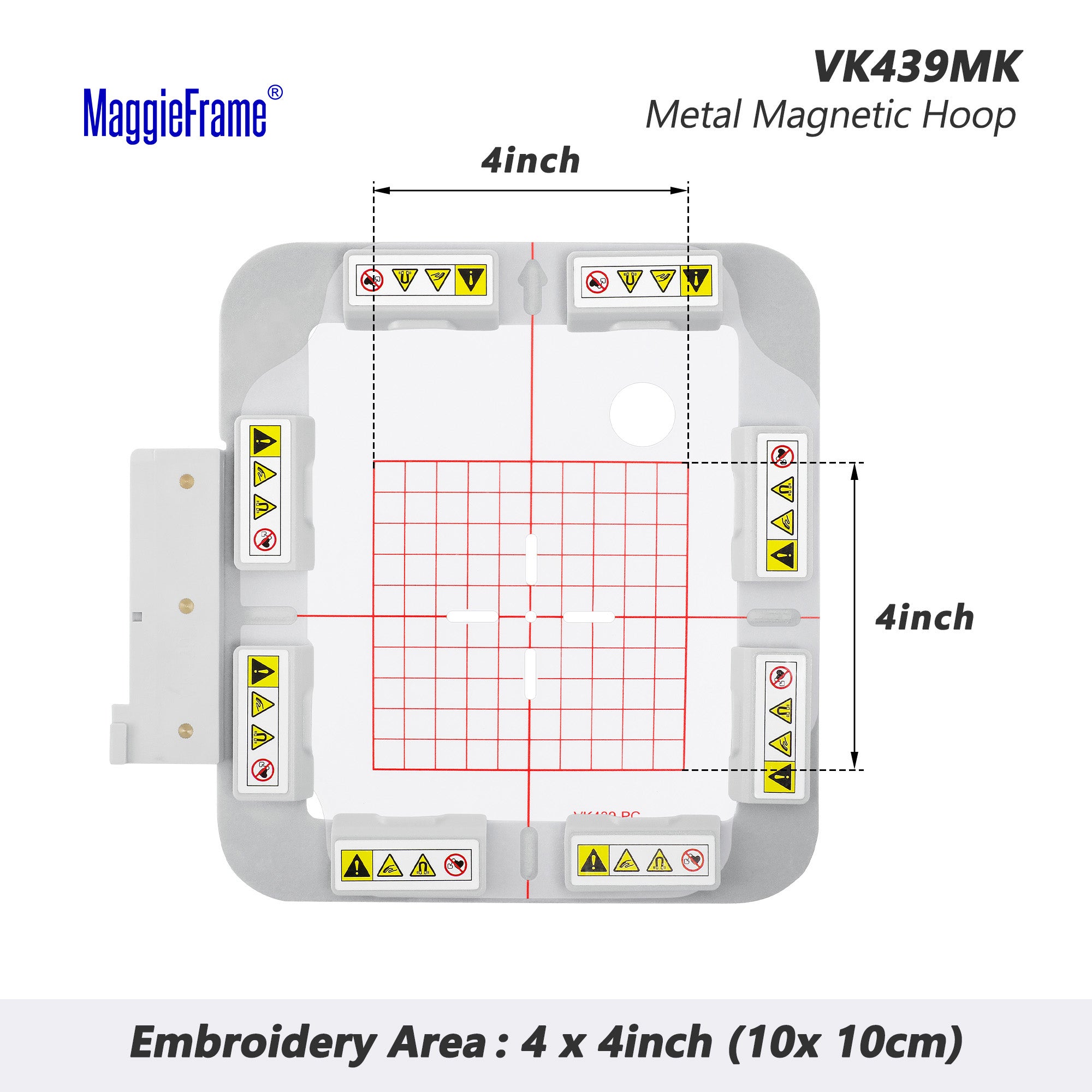Telaio magnetico MaggieFrame 4×4″ (100×100 mm) per macchine da ricamo Husqvarna Viking e Pfaff – Modello VK439MK
