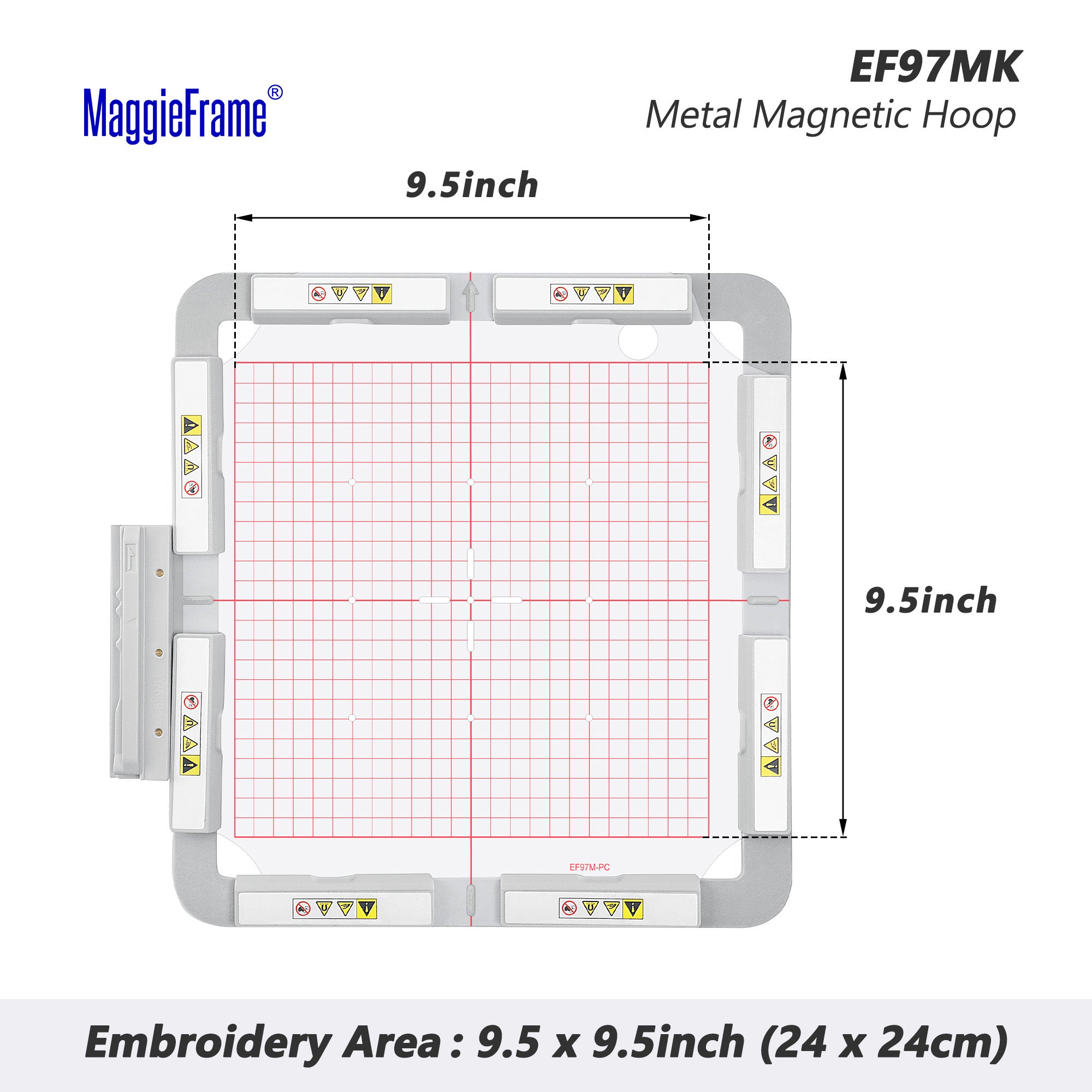 MaggieFrame Magnetisch Borduurraam 9.5″×9.5″ (240×240 mm) – voor Brother/Babylock borduurmachines (EF97MK)