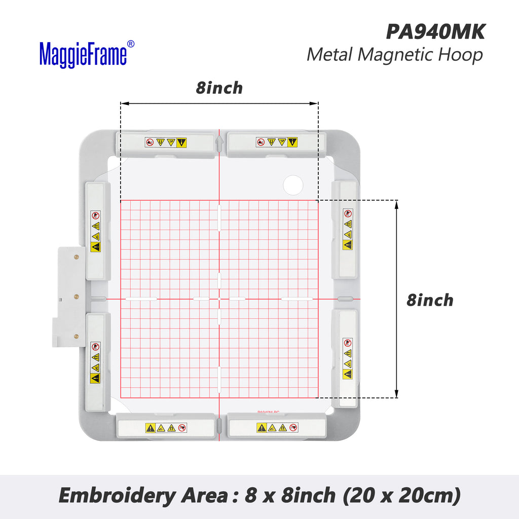 MaggieFrame magnetisch borduurraam voor Husqvarna Viking & Pfaff borduurmachines – Metaal frame 8×8″ (200×200 mm)