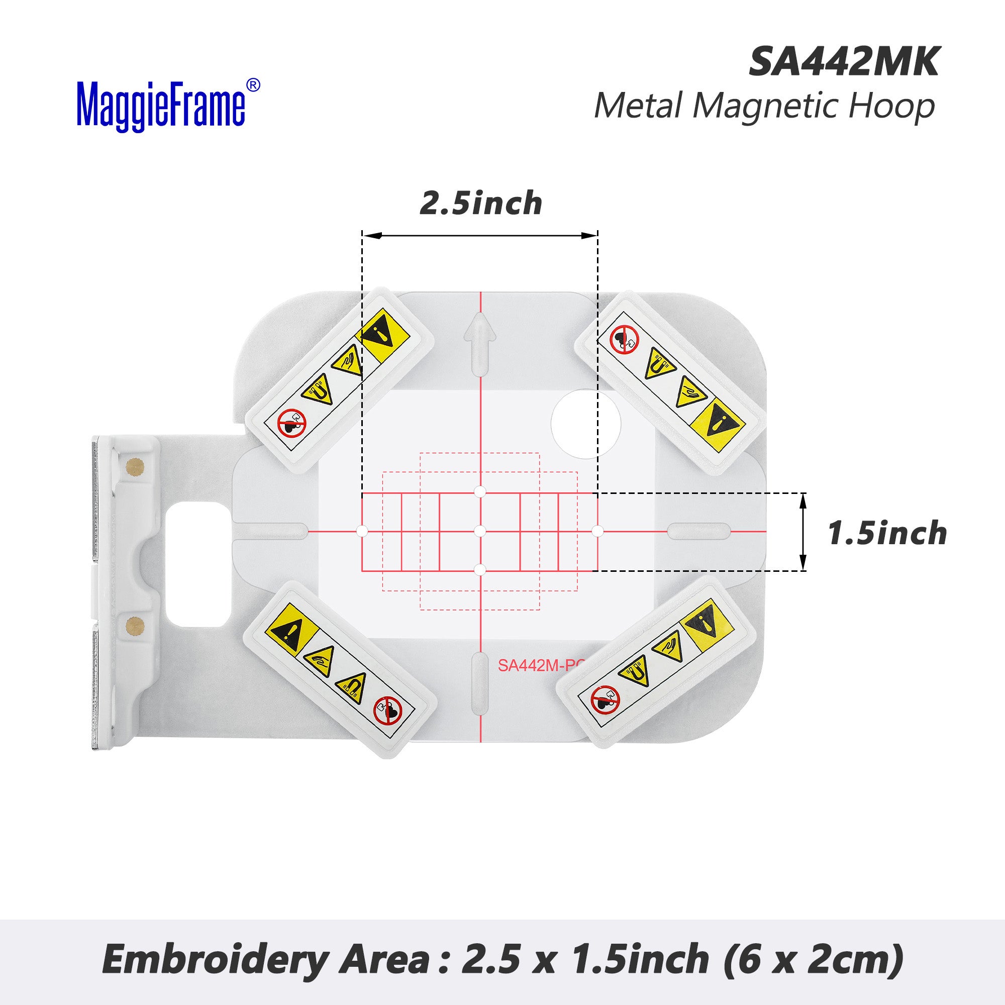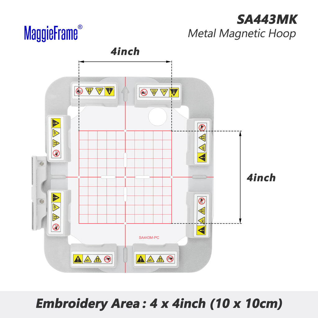 SA443MK: 1 x magnetisch borduurframe (normaal metalen borduurframe); 6 x magneten; 1 x rastertemplate.