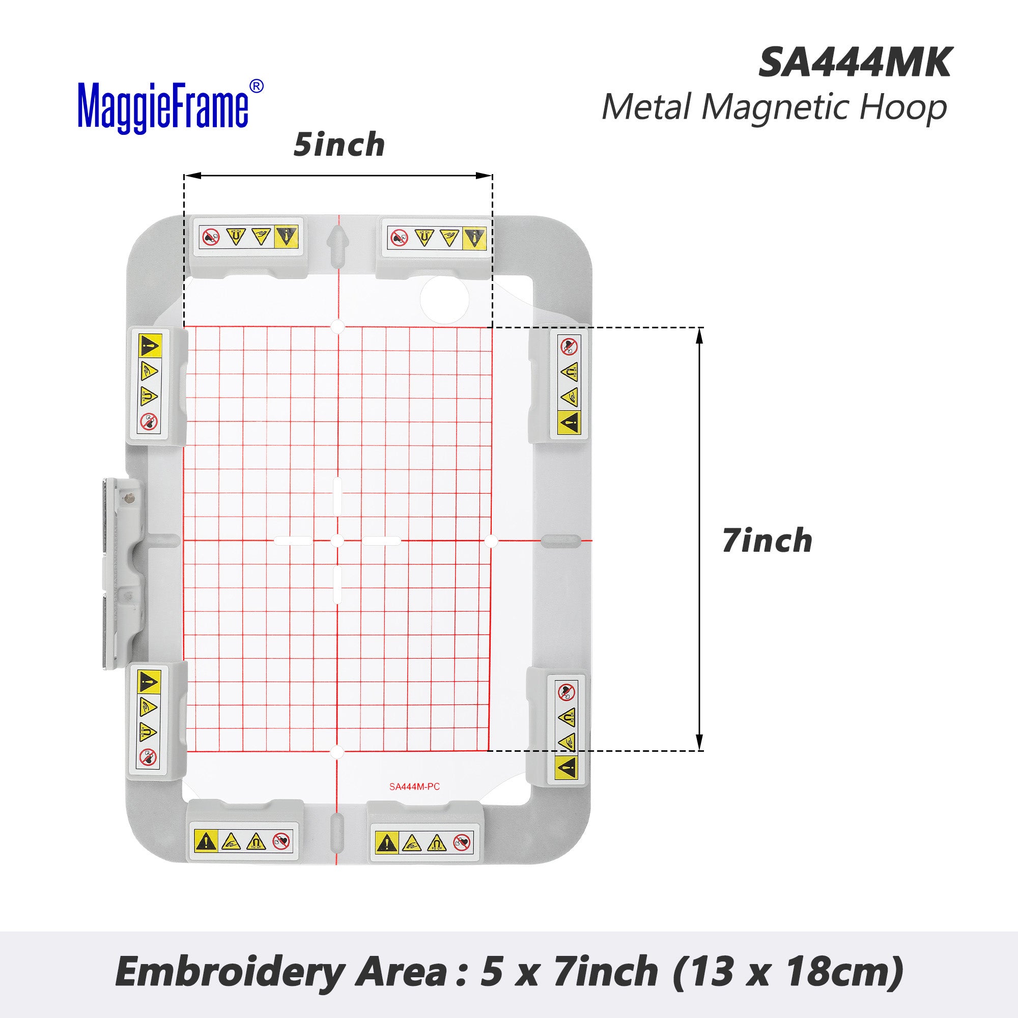 SA444MK: 1 x magnetisch borduurframe (middelgroot metalen borduurframe); 6 x magneten; 1 x rastertemplate.