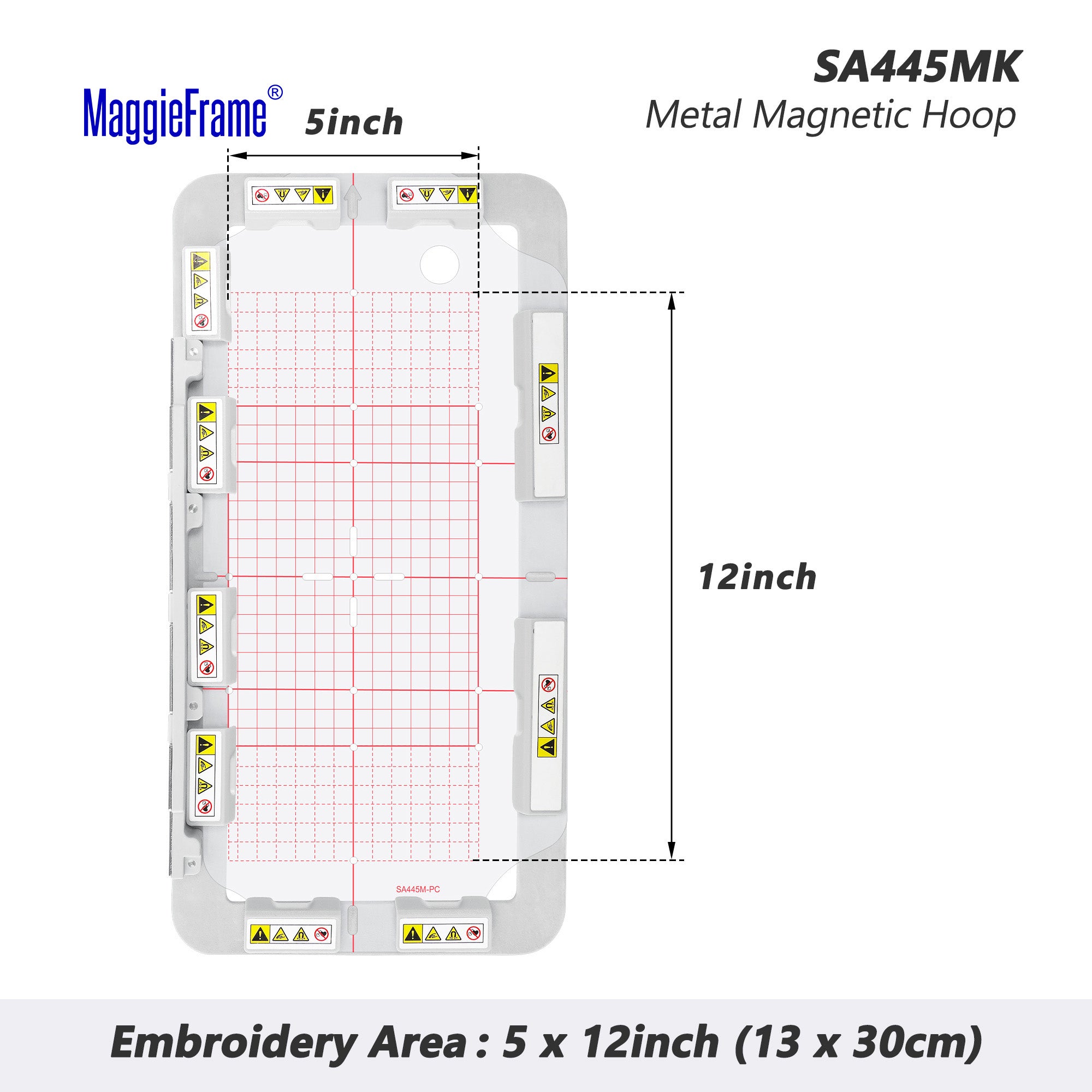 SA445MK: 1 x magnetisch borduurframe (groot metalen borduurframe); 8 x magneten; 1 x rastertemplate.