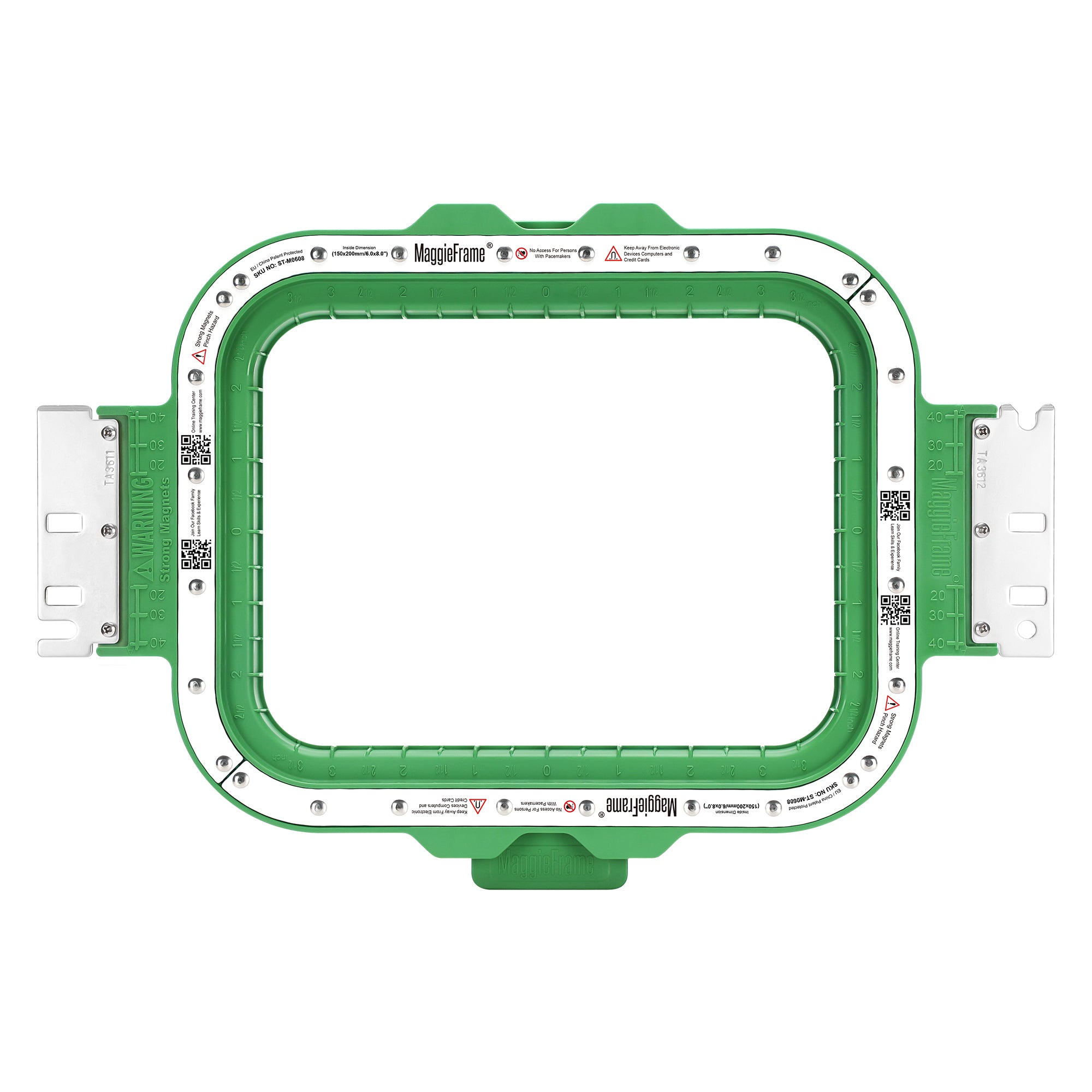 For beginners using Tajima embroidery machines, the 6″ × 8″ (150 × 200 mm) MaggieFrame magnetic embroidery hoop is a great all-around choice. It fits most apparel projects like left-chest logos and patches while saving time during hooping. This mid-size frame helps new embroiderers achieve high productivity and adapt easily to different garment types without frequent hoop changes.